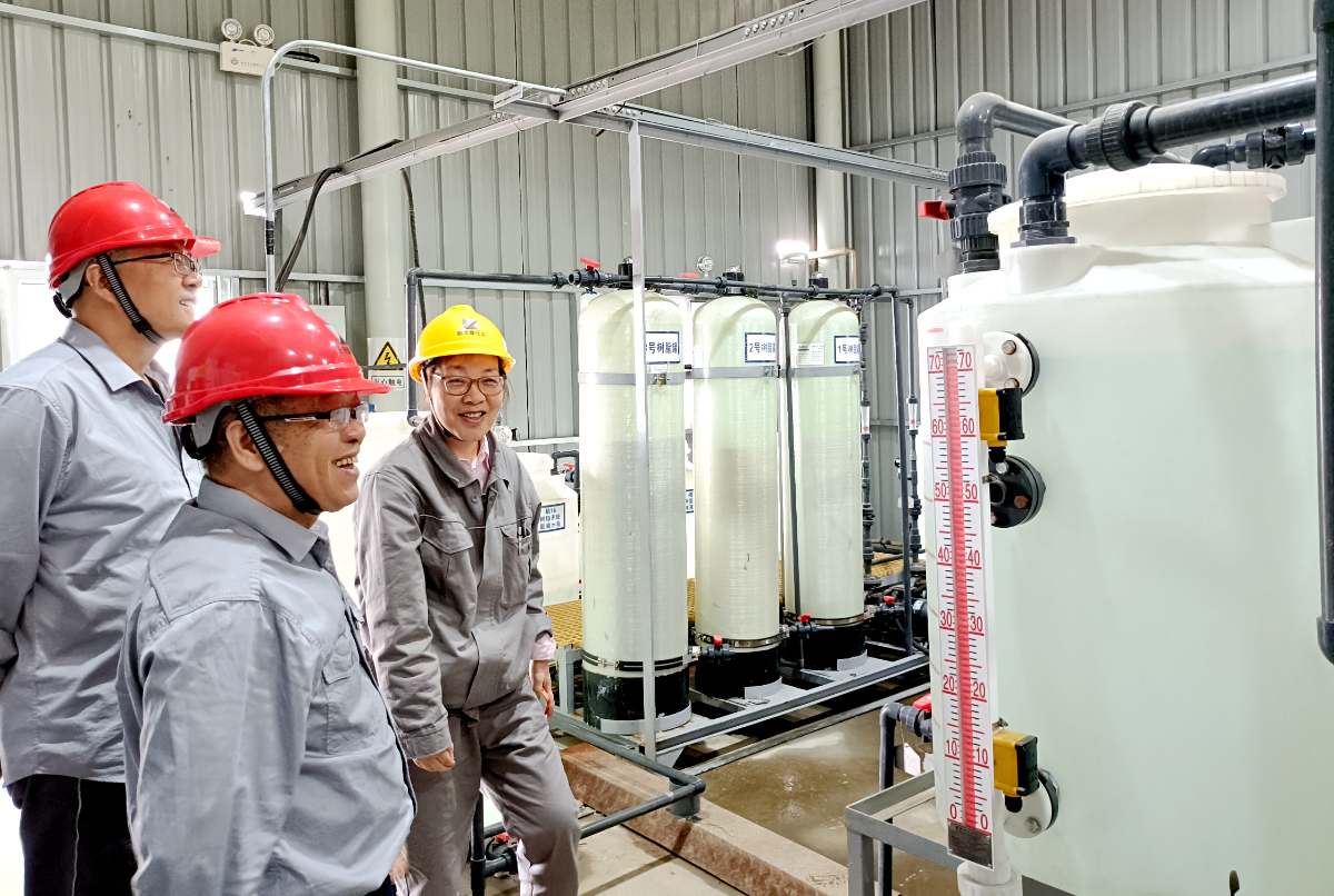 新天煤化工、白馬湖實驗室領導共同見證順利產(chǎn)出酸堿。 李海勝 攝