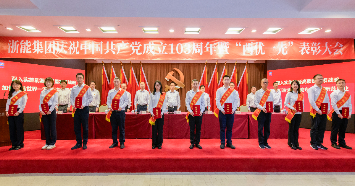 6月28日,浙能集團黨委召開慶祝中國共產黨成立103周年暨“兩優一先”表彰大會。會議認真學習貫徹習近平新時代中國特色社會主義思想,回顧中國共產黨波瀾壯闊的奮斗歷程和舉世矚目的豐功偉績,表彰2023年度集團“兩優一先”,進一步引導系統各級黨組織和廣大黨員干部深刻領悟“兩個確立”的決定性意義,增強“四個意識”,堅定“四個自信”、做到“兩個維護”,牢記囑托、感恩奮進,推動集團高質量發展不斷取得新成就。