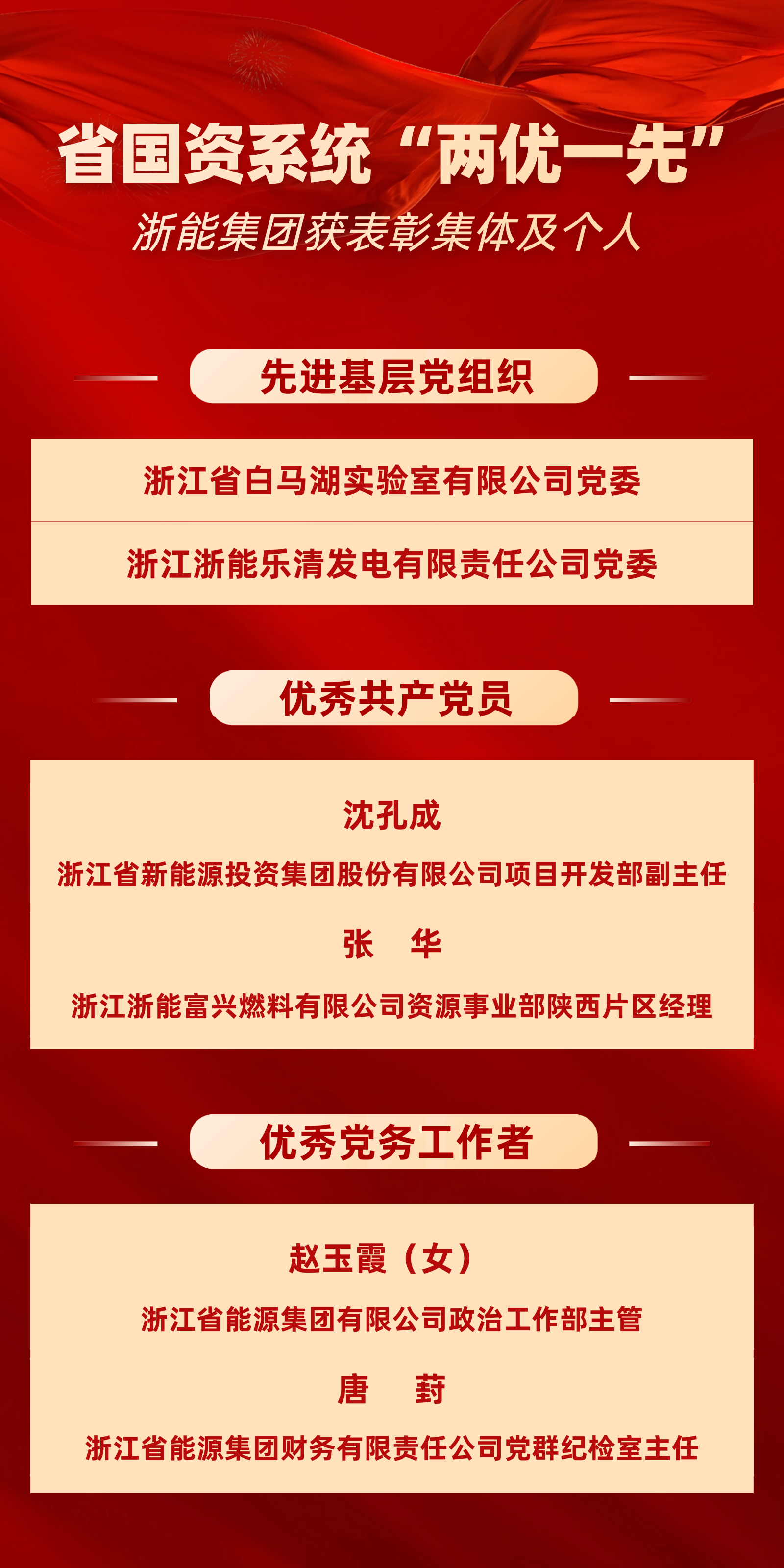 喜報!浙能集團這些集體和個人獲省國資系統(tǒng)“兩優(yōu)一先”表彰