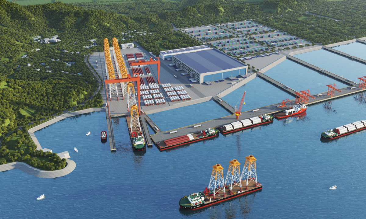 據悉,作為浙江首個服務深遠海項目的新型功能港,該項目旨在推動浙江深遠海風電開發及高端裝備制造“三位一體”發展,構建完整的風電裝備產業集群。項目分近期和遠期建設,近期服務于200萬千瓦深遠海示范項目,支撐深遠海風電項目開發建設;遠期將打造七大功能于一體的新型風電母港,計劃2030年全面建成。項目建成后,將形成100萬噸/年海上風電基礎及系泊系統的生產制造能力,300萬千瓦/年以上的深遠海風電總裝保障能力,以及3000萬千瓦/年的運維能力,為浙江建設全球先進制造業基地謀篇落子。