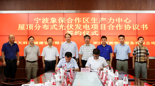 會(huì)上,浙能電力副總經(jīng)理、浙能能源服務(wù)公司總經(jīng)理程光坤與航天科技城建設(shè)有限公司總經(jīng)理郭光磊同時(shí)簽署了《寧波象保區(qū)生產(chǎn)力中心屋頂分布式光伏發(fā)電項(xiàng)目合作協(xié)議書(shū)》,象保合作區(qū)綜合能源服務(wù)的第一個(gè)項(xiàng)目正式拉開(kāi)序幕。