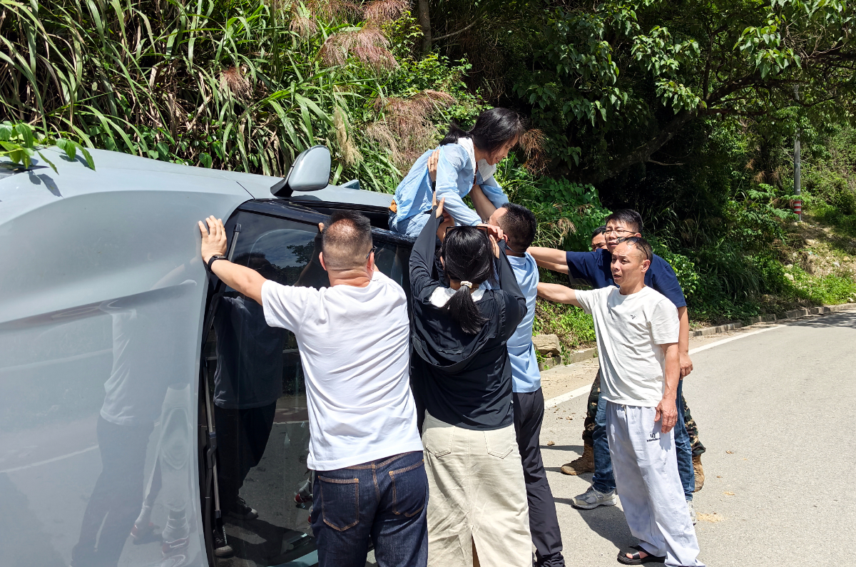 本網訊 近日,麗水龍泉市103縣道發生一起因私家車避讓山體墜物導致側翻的交通事故,浙石油銷售公司浙西區域中心5名員工途經現場,見義勇為,合力救助受困母女,獲得現場群眾好評。